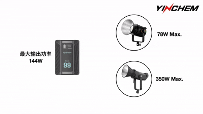 一块电池容量很大,但最大输出功率只有 144W,当你接入一台最大功率350W的灯或摄像设备时,结果可能是无法启动,或直接触发保护断电,因此,功率是电池能不能带的动的底线条件。